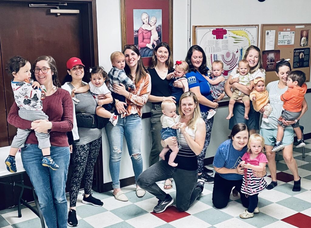 Mission: Moms Group seeks to build community among moms with young children to support and encourage one another.  We believe that motherhood is beautiful and challenging, and no one is meant to go it alone.  Not a perfect mom?  Neither are we!  Yet we are seeking holiness for ourselves and our families amid the chaos!