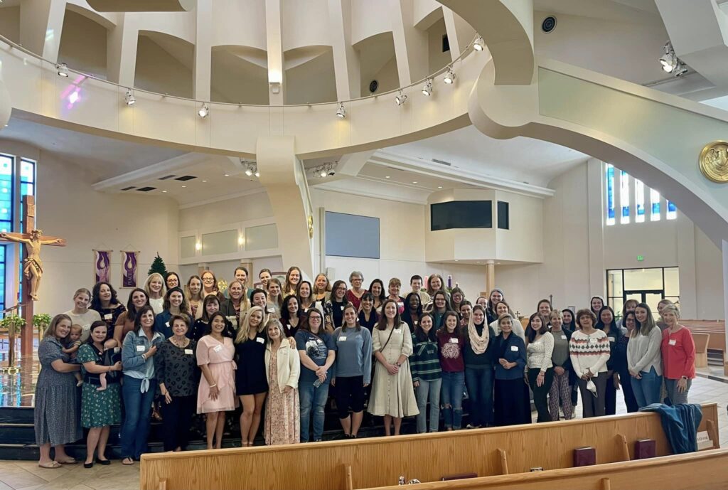 What do we do: We meet weekly to reflect on the upcoming Sunday’s Gospel, share our highs and lows of the week, and support each other in prayer and friendship.  We also meet for planned and spontaneous park meet-ups, moms’ brunches/dinners, and other adventures together.  We serve the community when needs arise (i.e. meal trains for mamas, meals for the youth ministry, supply drives for pregnancy centers), and hold an annual Advent Women’s Retreat open to all women. Many of us also participate in the Couples’ Dinner group on the last Saturday of most months.